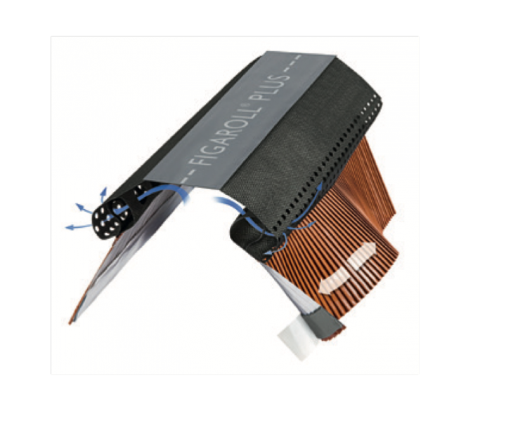 A Cumeeira a Seco é uma solução construtiva sustentável que conjuga vários elementos e que visa a eficácia do processo construtivo e o bom desempenho futuro dos edifícios, uma vez que promove a eficiência energética e a durabilidade dos mesmos. Este produto é fabricado com recurso a complexos processos de análise e eficiência energética patenteados. A banda FIGAROLL PLUS, quando aplicada otimiza os recursos energéticos da habitação, permitindo a ventilação entre telha e suporte, evitando as condensações neste espaço.